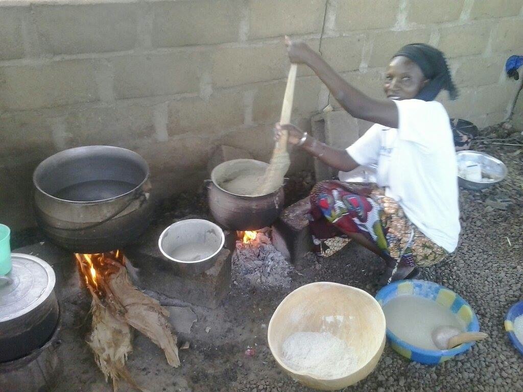 Photo: La cuisinière est entrain de malaxer le tô pour les élèves du foyer cantine.