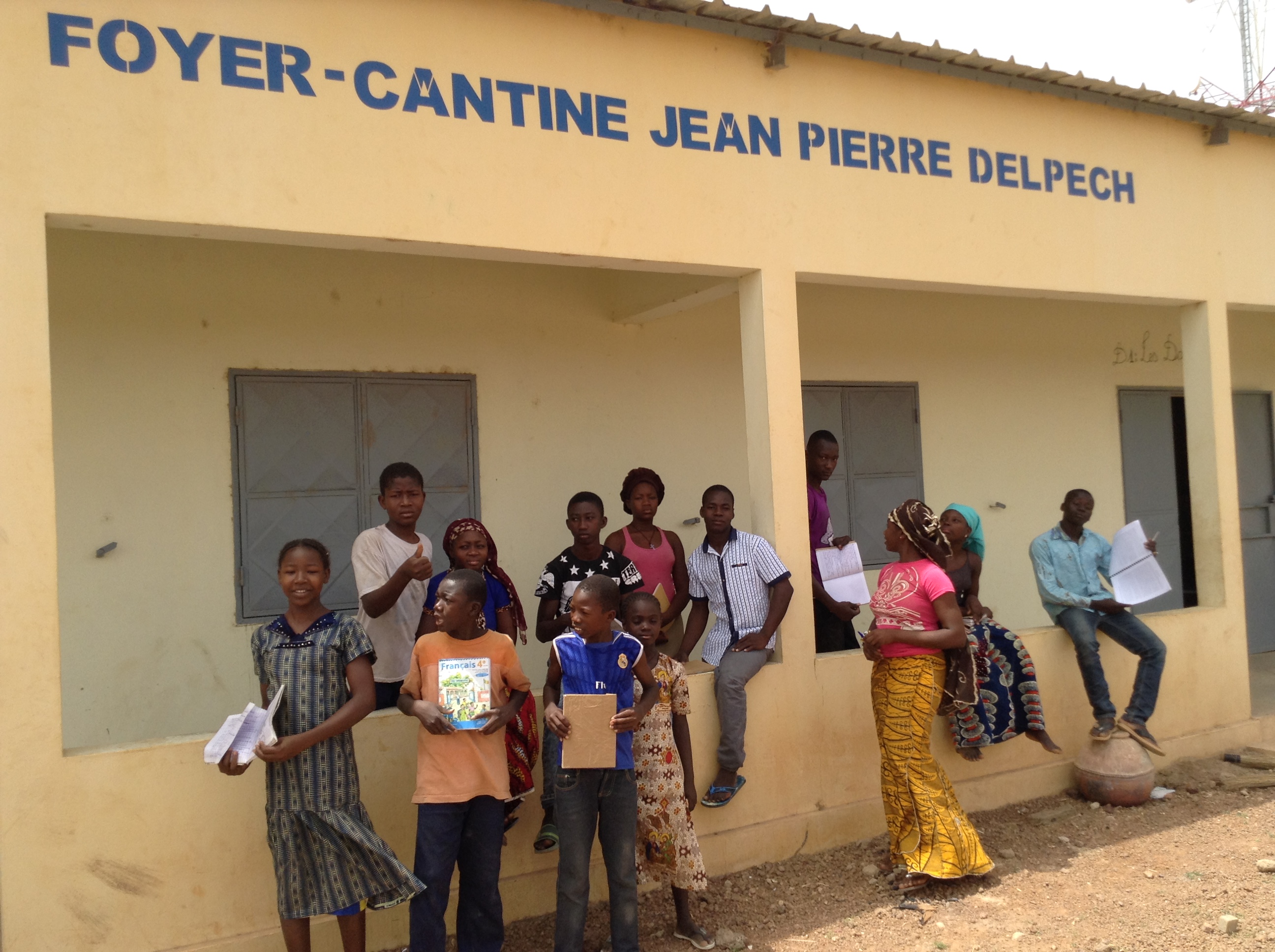 Les aménagements du Foyer se poursuivent: photo ci-dessus les pensionnaires à l’extérieur du bâtiment dortoir où le nom « Foyer Jean-Pierre Delpech » a été rajouté sur la façade.