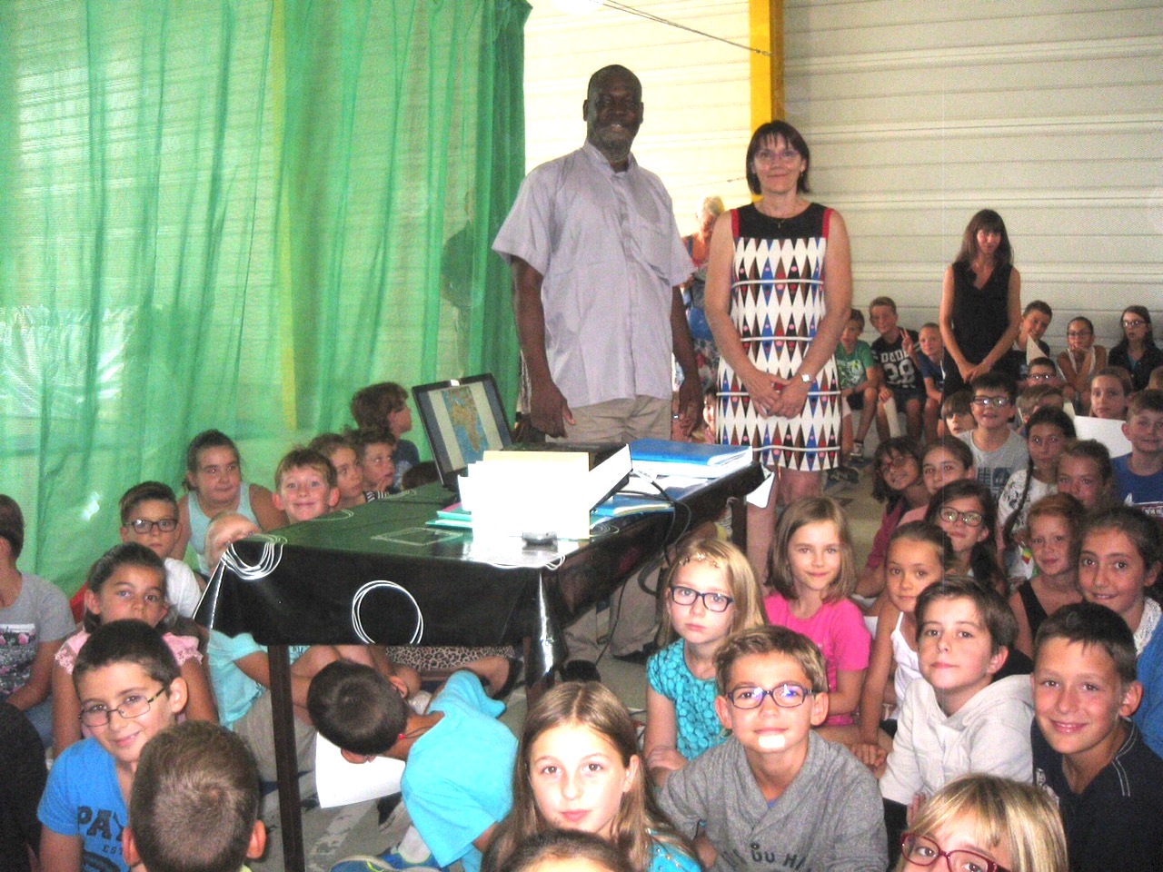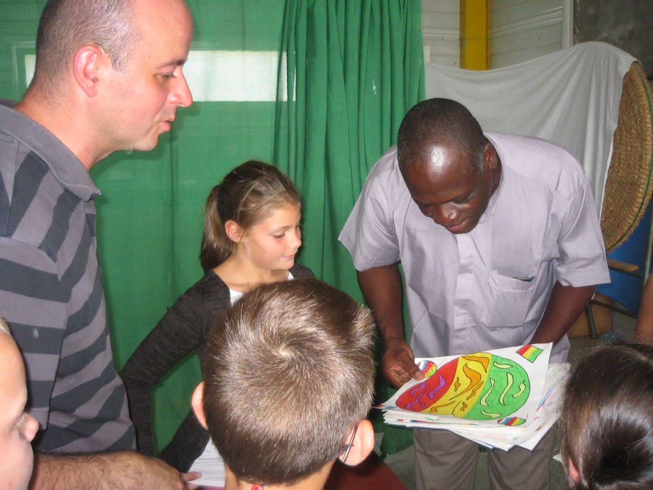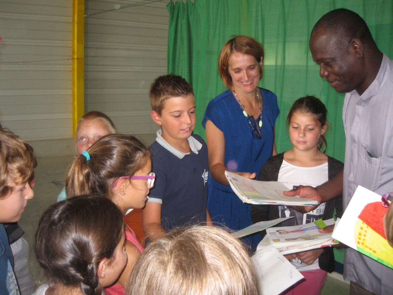 julienJulien DAKOUO, Curé de Kolongotomo et initiateur du projet de Foyer-Cantine Jean-Pierre Delpech a passé la matinée de ce lundi 12 septembre à Casteljaloux (Lot et Garonne) pour rencontrer les élèves de l’Institution Sainte Marie et développer les liens de jumelage avec l’école malienne. Plus d’une centaine d’élèves du primaire, répartis en trois groupes, ont participé à cet échange qui s’appuyait sur la projection de photos de la vie scolaire dans cette école du Diocèse de Ségou. Les enfants de Casteljaloux avaient participé l’an dernier à un « repas bol de riz » pour contribuer à leur manière au financement de la construction du Foyer-Cantine de Kolongo. Mais ils ont cette fois franchi une étape supplémentaire en remettant à Julien des dessins illustrés de … citations en bambara (l’une des langues parlées au Mali). Ces messages seront remis dans quelques jours aux enfants de l’école de Kolongo.