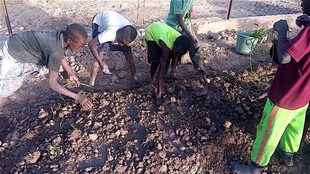 En vue de la création du potager les élèves procèdent actuellement à réalisation d’une pépinière. Avec le repiquage de salades, choux, aubergines, piments , patates, tomates, et betteraves: c’est la promesse de récoltes futures qui viendront améliorer l’ordinaire de la cantine !
