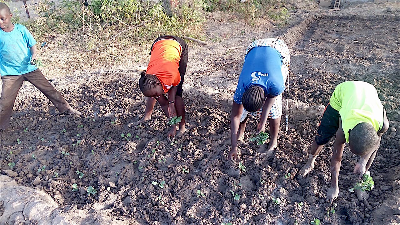 En vue de la création du potager les élèves procèdent actuellement à réalisation d’une pépinière. Avec le repiquage de salades, choux, aubergines, piments , patates, tomates, et betteraves: c’est la promesse de récoltes futures qui viendront améliorer l’ordinaire de la cantine !