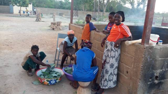 Autour de Delphine Dembelé la cuisinière tout le monde contribue à la réalisation de ces repas ce qui participe à l’animation de la vie du Foyer.