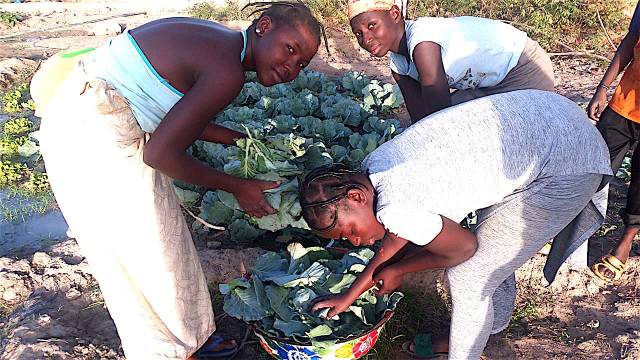 Grâce au premières récoltes du potager les menus quotidiens du Foyer s’améliorent et se diversifient. Il y a eu d’abord les salades servies tous les deux jours et maintenant le ramassage des feuilles de choux pour le couscous. Un travail auquel participent les pensionnaires.
