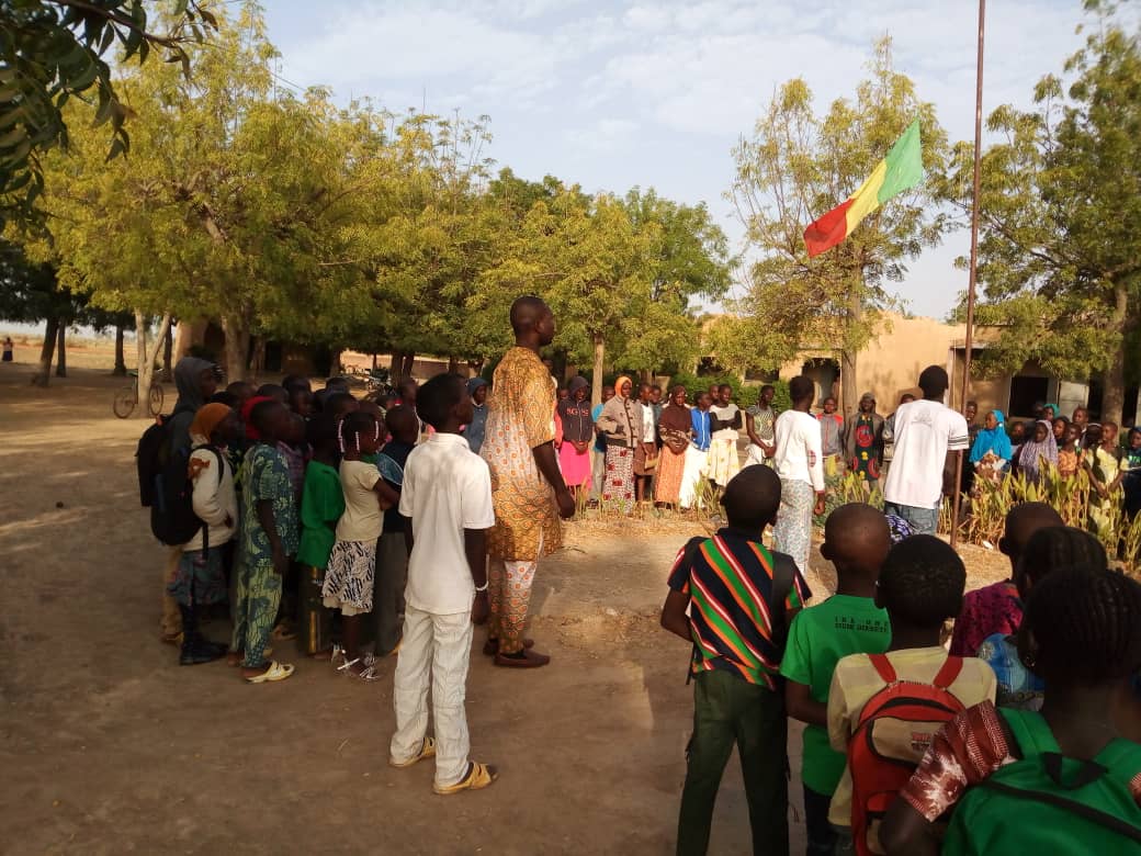 Chaque matin avant le début de la classe: le lever des couleurs qui rassemble tous les élèves.