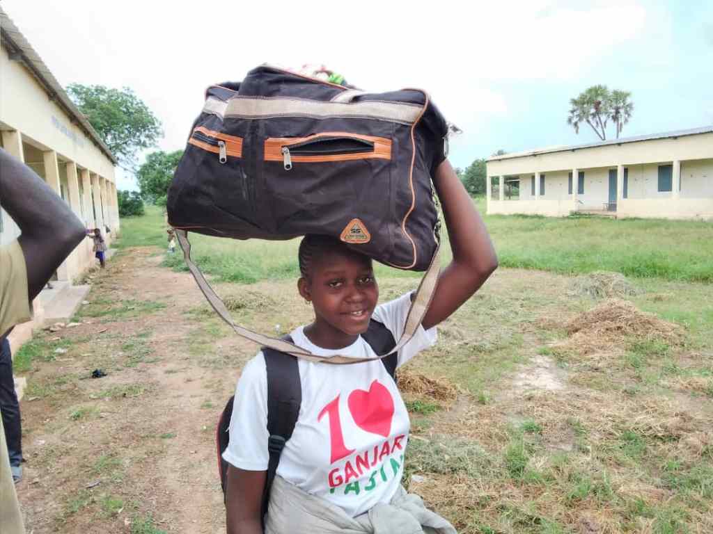 Sur les photos: la dernière à partir pour rejoindre le Cercle de Tominian (région de Ségou), accompagnée par le gardien du Foyer qui l’aide à porter ses bagages.